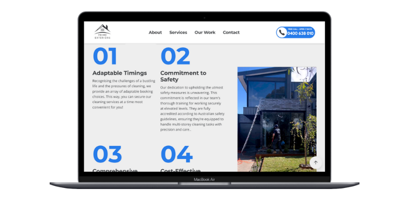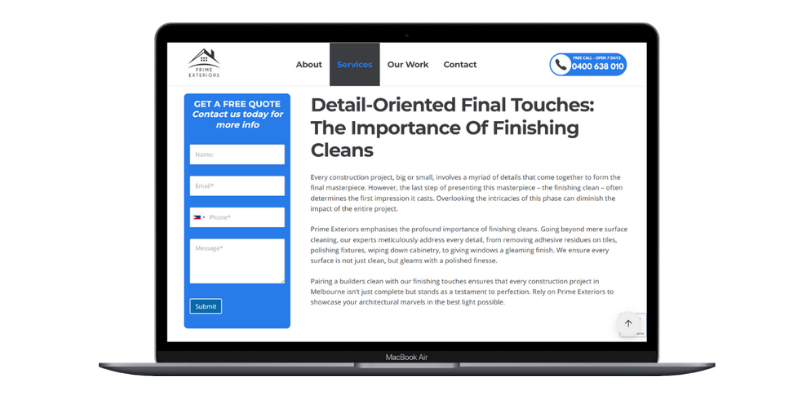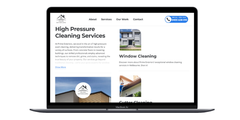 At Warren Digital, we collaborated with Prime Exteriors to craft a website that effectively highlights their expertise in high-pressure washing services across Melbourne. Our approach encompassed several key strategies:
